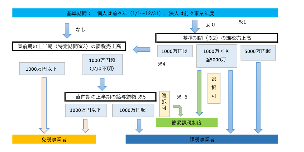 ※6 課税期間初日の前日までに「消費税簡易課税制度選択届出書」を提出することで簡易課税を選択できます。