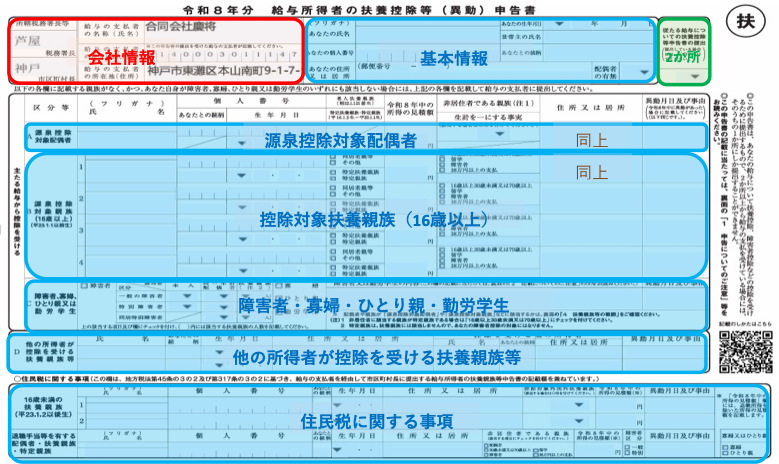 「令和8年分 給与所得者の扶養控除等(異動)申告書」書き⽅